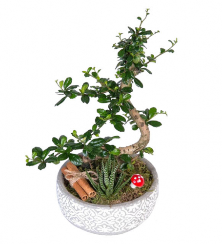 Ahşap Ayaklı Saksıda Sukulent ve Kaktüs